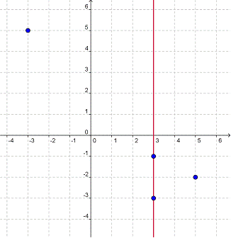 Nota que la línea vertical pasa a través de dos puntos. Una coordenada x tiene múltiples coordenadas y. Eso también significa que la relación no es una función.