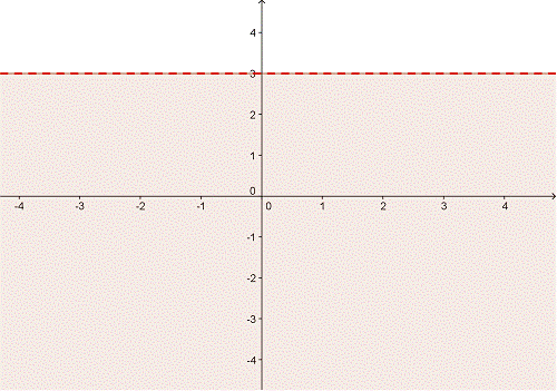En esta desigualdad, la línea límite se grafica como una línea punteada. Esto significa que los valores sobre la recta no están incluidos en el conjunto de soluciones de la desigualdad.