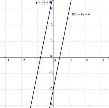 This doesn’t make sense. How can 0 = -4? The graph of this system sheds some light on what is happening: