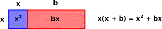 En este ejemplo, el área de todo el rectángulo está dada por x(x + b).