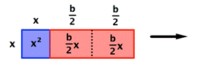 Ahora vamos a convertir este rectángulo en un cuadrado. Primero, dividimos el rectángulo rojo con área bx en dos rectángulos iguales cada uno con área