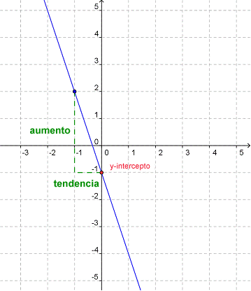 La forma pendiente-intersección de una ecuación lineal se escribe como , donde m es la pendiente y b es el valor de y en la intersección en y. Como sólo necesitamos saber la pendiente y la intersección en y para escribir ésta fórmula, es muy fácil derivar la ecuación de la recta a partir de la gráfica o trazar la gráfica a partir de la ecuación.