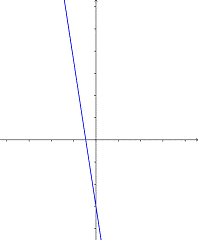 La ecuación también nos da la pendiente de la recta, que es -3. Por lo que contamos 3 unidades por encima de -1 y graficamos el segundo punto. Luego dibujamos una línea a través de estos dos puntos, y ahí la tenemos, la gráfica de .