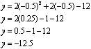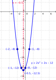 | Plot the vertex (-0.5, -12.5) and draw the axis of symmetry x = -0.5. |