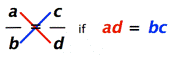 · So it’s true if b ≠ 0 and d ≠ 0. · If we’re starting with the fractions, then b and d can’t be 0, so this “cross-multiplication” rule works.