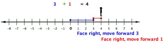 Let’s see how this works. When you add positive numbers, you are moving forward, facing in a positive direction.