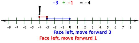 Recall that when you add a negative number, you move forward, but face in a negative direction (to the left).