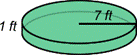 | | Usa la imagen para identificar las dimensiones. Luego sustituye r = 7 y h = 1 en la fórmula. |