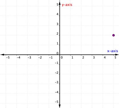 | (5, y) | Begin at the origin and move along the x-axis. This is the x-coordinate and is written first in the ordered pair. |