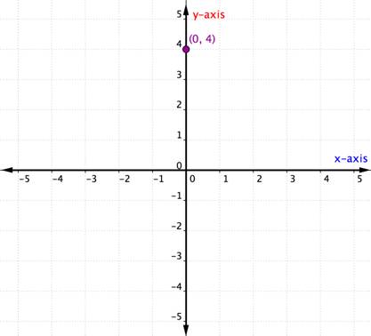 What happens if an ordered pair has an x- or y-coordinate of zero? The example below shows the graph of the ordered pair (0, 4).