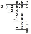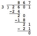 | Problema | 260.1 ÷ 0.3 = ? |