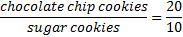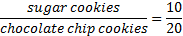 Some people think about this ratio as: “For every 10 sugar cookies I have, I have 20 chocolate chip cookies.”