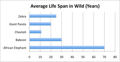 Let’s look at one example. Here is some information about the average life span of five animals in the wild, presented in a table.