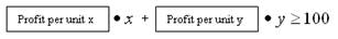 (Hint for the graph: Think back to standard form. How many of only unit x would you have to sell to make your goal? How many of only unit y? There are also multiple combinations of x and y. How do you show this on your graph?)