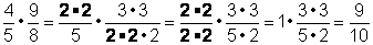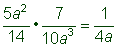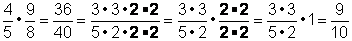 | Reagrupa las fracciones para expresar los factores comunes como una multiplicación por 1 y luego multiplica. |