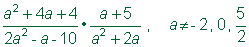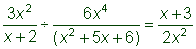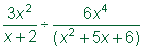 El dominio es todos los números reales excepto 0, −2 y −3. | Determina los valores excluidos que hacen los denominadores y el numerador del divisor igual a 0. |