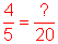 | Multiply the numerator and denominator by 4 to create an equivalent fraction with a denominator of 20. |