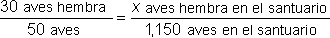 | Problema | Entre cierta especia de ave tropical, 30 de cada 50 individuos son hembras. Si hay un santuario para aves que tiene una población de 1,150 de dichos pájaros, ¿cuántos pueden esperarse que sean hembras? |