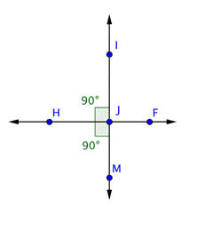 , you would find that angle to be 90º, too.) This is what happens when two lines are perpendicular—the four angles created by the intersection are all right angles.