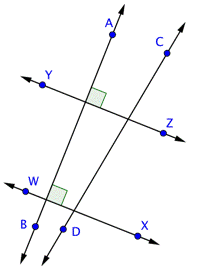 Si dos rectas son paralelas, entonces cualquier recta que es perpendicular a una de ellas también será perpendicular a la otra recta. De manera similar, si dos rectas son perpendiculares a la misma recta, entonces esas rectas son paralelas una con la otra. Veamos un ejemplo para identificar algunos de estos tipos de rectas.