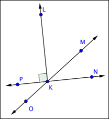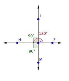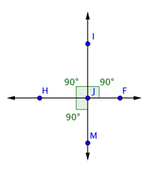 , habrías encontrado que también mide 90º.) Esto sucede cuando dos rectas son perpendiculares — los cuatro ángulos creados por la intersección son ángulos rectos.