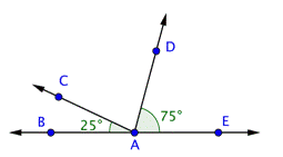 | Dos ángulos suplementarios forman un ángulo llano, por lo que sus medidas deben sumar 180º. |