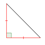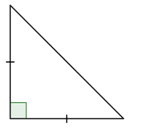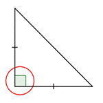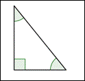 | Un triángulo que contiene un ángulo recto (1 ángulo que mide 90°). Nota que el ángulo recto se muestra con una marca de esquina y no necesita ser etiquetado como de 90°. |