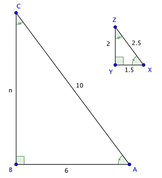 | Sustituye en las longitudes de los lados conocidos en las razones. Sea n el lado desconocido. |