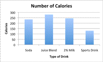 | Answer | From most to least number of calories per serving: Juice Blend, 2% Milk, Soda, Sports Drink | |