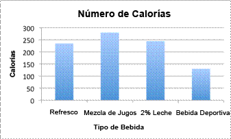 | Respuesta | Empezando por la bebida con menor cantidad de calorías: Jugo, Leche de 2%, Refresco, Bebida Deportiva | |