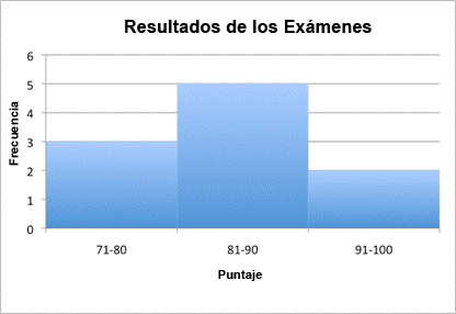 Observando las calificaciones, puedes saber que algunas personas sacaron 70s, otras 80s, y algunas 90s. Puedes organizar los datos en un histograma con los datos continuos desde 0 hasta 100, usando los intervalos 71-80, 81-90, y 91-100.