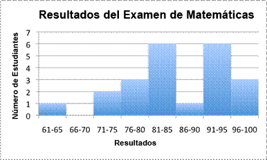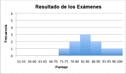 La segunda gráfica muestra algo como una curva en los datos. Nadie sacó 70 o menos, y los datos alcanzan su máximo en el rango 81-85. Aumentar el número de intervalos tiene un efecto en la forma de la gráfica, y nos ayuda a ver más tendencias que se encuentran en los datos.