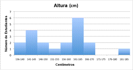 Cada intervalo en el histograma es de 5 cm. |