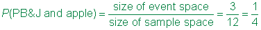 | Since the outcomes are equally likely, the probability of the event is the ratio of event space to sample space. |