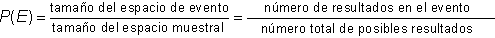 Como los resultados son igualmente probables, la probabilidad del evento es la razón entre el espacio de evento y el espacio muestral.