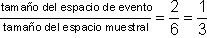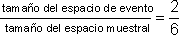 | Como los resultados son igualmente probables, la probabilidad del evento es la razón del espacio de evento con el espacio muestral. |