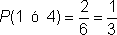 Como los resultados son igualmente probables, la probabilidad del evento es la razón del espacio de evento y el espacio muestral. | |||||||||||||||