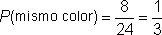 James: | Como los resultados son igualmente probables, la probabilidad del evento es la razón entre el espacio de evento y el espacio muestral. | |||||||||||||||||||||||||||||||||||||||||||||||||||||||||||