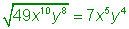 | Busca números cuadrados y variables. Factoriza 49 en 7 • 7, x10 en x5 • x5 y y8 en y4 • y4. |