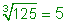 Los factores primos de 125 son 5 • 5 • 5, que se pueden reescribir como 53. La raíz cúbica de un número elevado al cubo es el número mismo, entonces