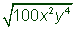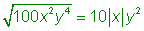 | 10 • |x| • y2 | Toma la raíz cuadrada de cada radical. Como no sabemos si x es positiva o negativa, usamos |x| para incluir ambas posibilidades y así garantizando que la solución será positiva. |