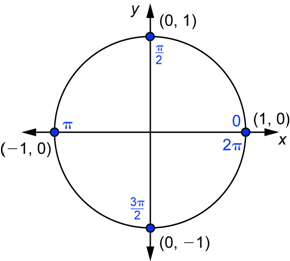 | | Grafica los cuatro ángulos en la posición estándar. Las coordenadas del punto en el primer cuadrante las encontramos arriba. La coordenada-x es el valor de cos θ, y la coordenada-y es el valor de sen θ. Los otros puntos son espejos del primer punto sobre el eje-x, el eje-y, o ambos. |
