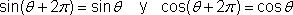 Cada vez que sumamos 2π a un ángulo, digamos , obtendremos el mismo valor de la función.