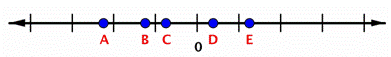 Lo mismo ocurre cuando comparamos dos números enteros o números racionales. El número a la derecha siempre es más grande que el número a la izquierda.