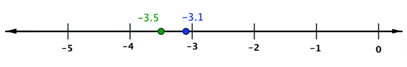 | −3.5 y −3.1 | −3.1 es mayor que −3.5 porque −3.1 está a la derecha de −3.5 (ver abajo) | −3.1 > −3.5 o −3.5 < −3.1 |